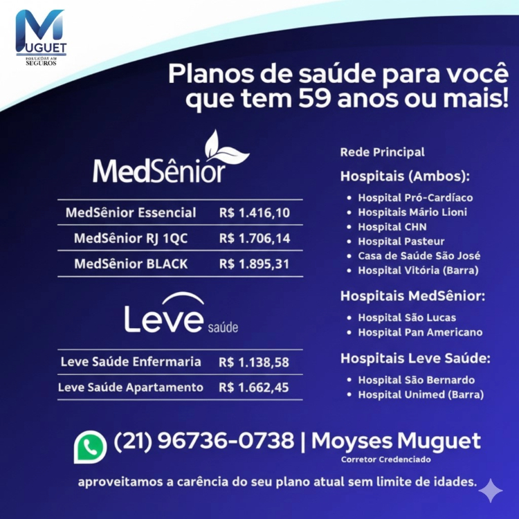 O plano de saúde e o seguro de vida individual oferecem proteção completa para você e sua família, garantindo acesso à rede médica de qualidade, atendimentos preventivos e segurança financeira em situações inesperadas. Entre as vantagens estão a personalização das coberturas, tranquilidade no dia a dia e o cuidado com o bem-estar e o futuro em um único planejamento.